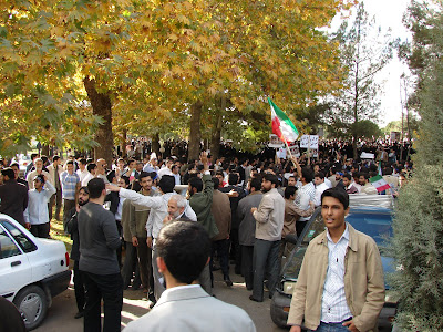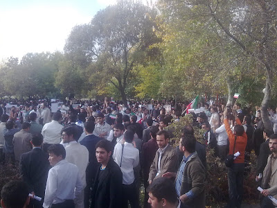 پس از دور شدن جمعيت اغتشاشگر فضا كمي آرام تر شده و جمعيت دانشجويان روبروي درب شمالي به سر دادن شعار و گوش فرادادن به سخنراني پرداختند. ليكن ديري نگذشت كه خبر هايي از حضور اغتشاشگران در پشت نرده هاي دانشگاه و آشوب گري آن ها به گوش رسيد. پس از مدتي جمعيت تصميم خود را گرفته بود و تصميم داشت اين مشكل را به رسم دانشجويي حل كند و اجازه ندهد اقليتي اقدام به آشوب و تخريب وجهه دانشگاه كرده و خود را به جاي تمام دانشجويان معرفي كنند.